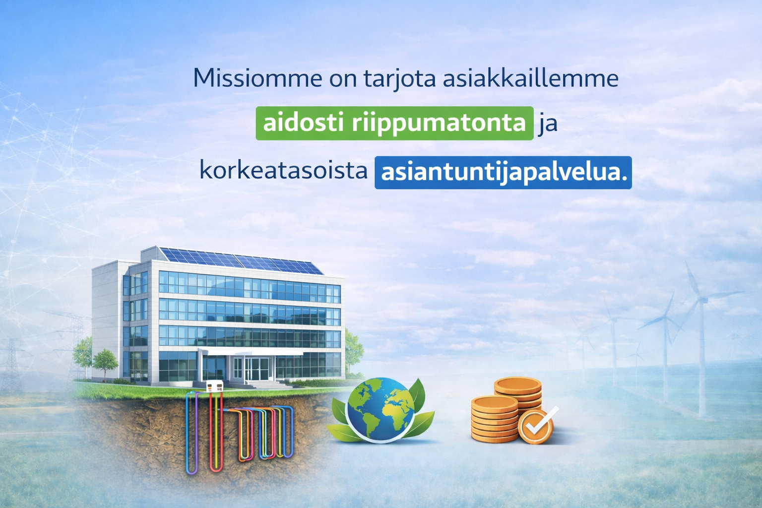 Tuemme kiinteistönomistajia, rakennuttajia ja muita alan toimijoita erityisesti geoenergiainvestointeihin liittyvissä strategisissa, teknisissä ja taloudellisissa kysymyksissä – silloin kun päätöksillä on pitkälle kantavia vaikutuksia.